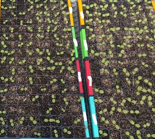 Lettuce seedlings during greenhouse trial establishment. Photo used with permission.